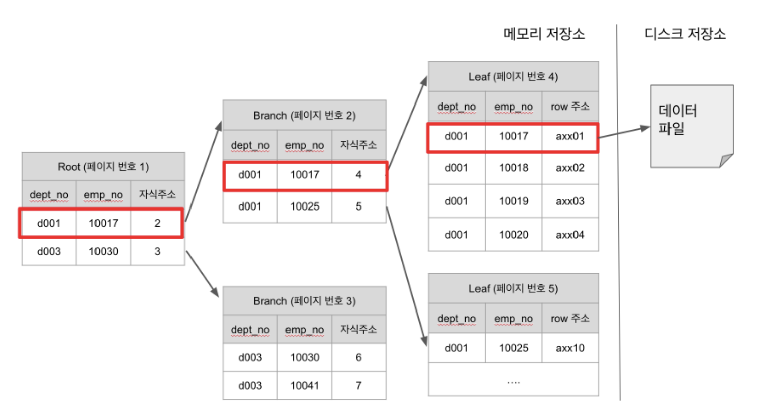 인덱스는 지정한 컬럼들을 기준으로 메모리 영역에 일종의 목차를 생성하는 것입니다.